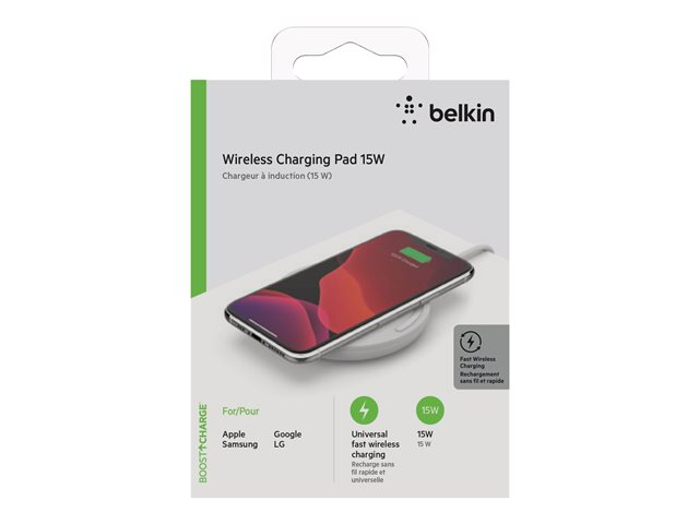 Belkin BoostCharge - Langaton latausalusta + AC-virtasovitin - 15 watti(a) - QC 3.0 - valkoinen