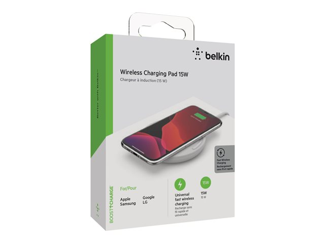Belkin BoostCharge - Langaton latausalusta + AC-virtasovitin - 15 watti(a) - QC 3.0 - valkoinen WIA002VFWH