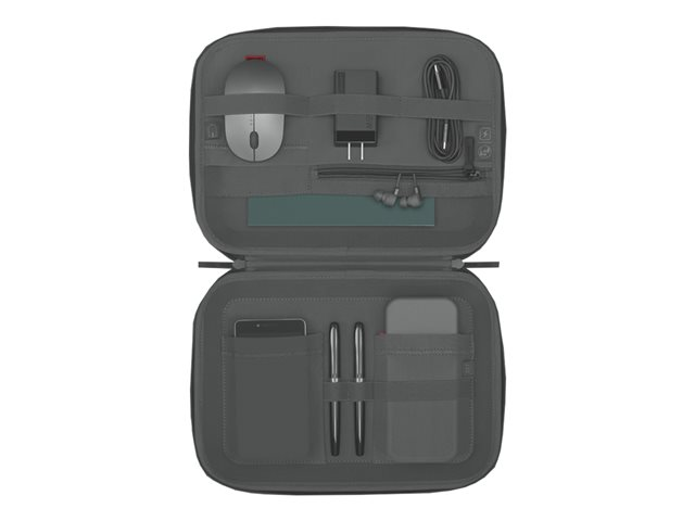 Lenovo Go - Kova kotelo matkapuhelimeen / kuulokkeisiin / muistivihkoon / kaapeliin / virtasovittimeen / kyniin / virtalähteeseen / hiireen - polyesteri, kierrätetty PET-muovi - tummanharmaa malleihin ThinkCentre M75t Gen 2 11W5