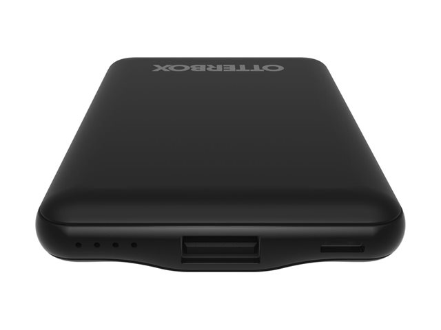 OtterBox Standard Mobile Charging Kit - Virtapankki - 5000 mAh - 10.5 watti(a) - 2.1 A - Apple Fast Charge, FC (USB) - johdossa: Lightning/Micro-USB/USB-C - musta